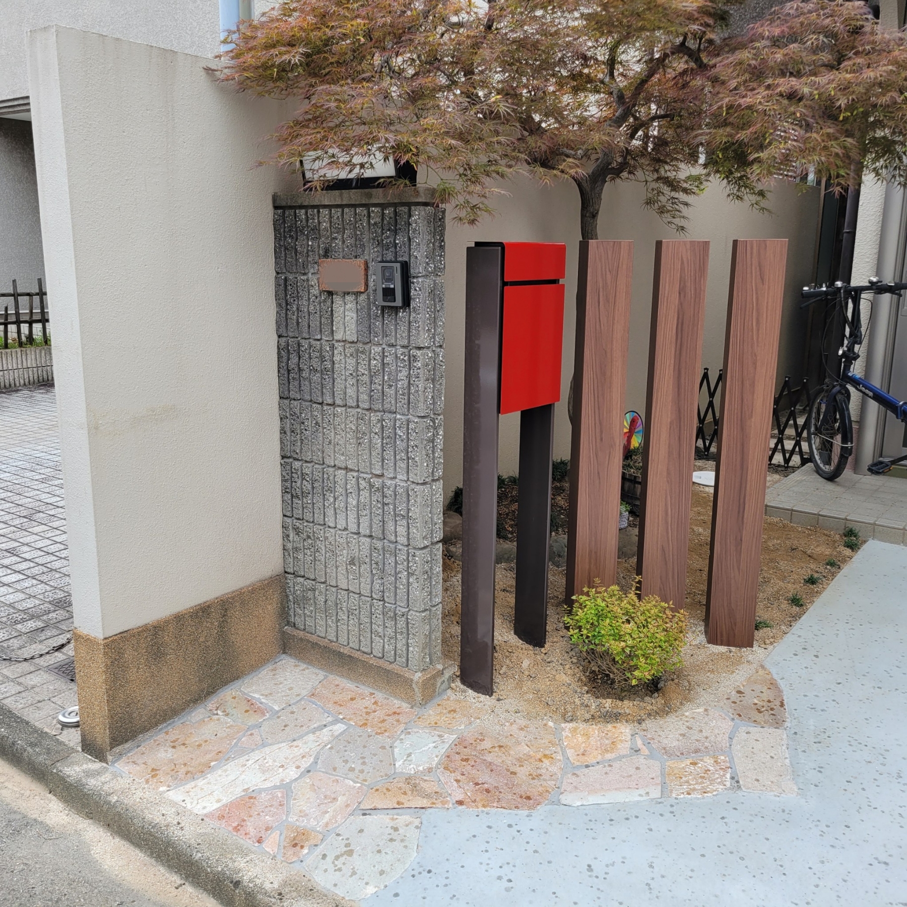和歌山県和歌山市の「住まいのリフォーム美空間」です。 和歌山県や南大阪エリアなどで、住宅リフォーム・リノベーションを行なっております。 今回は外構工事の様子をご紹介します。 ・ポスト YKK フィッテ シックレッド/カームブラック ・割石 ユニソン ナチュラルベリー