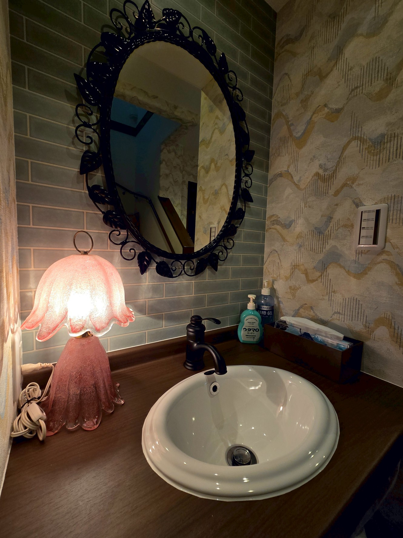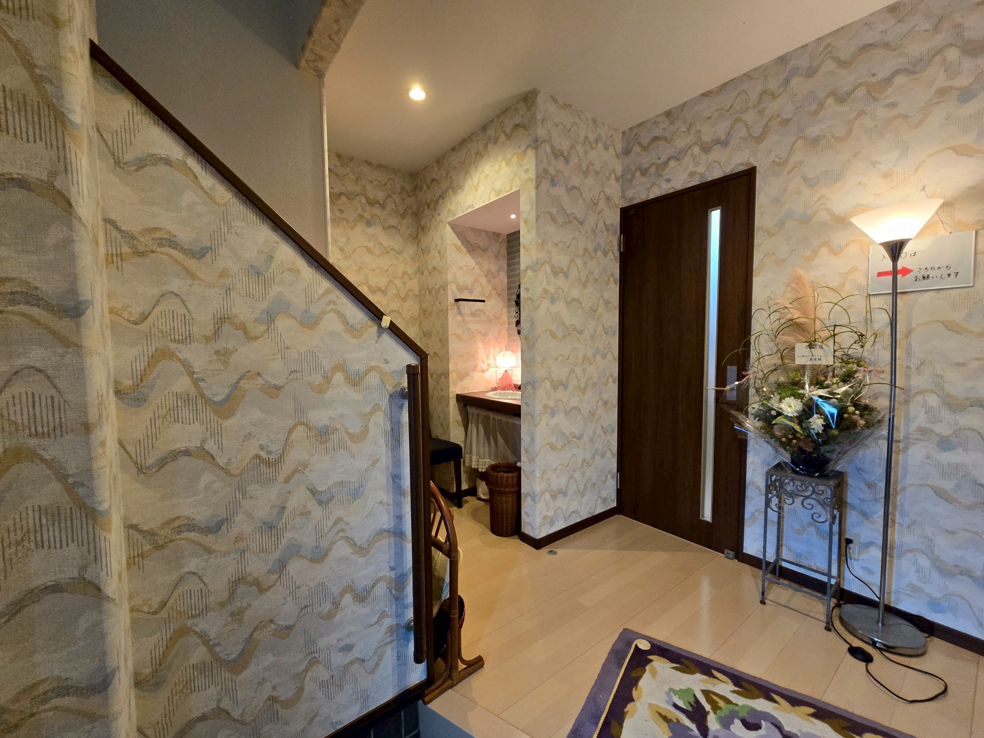 インパクトのある壁紙をセレクトし、お客様を華やかにお出迎えする空間に仕上げました。